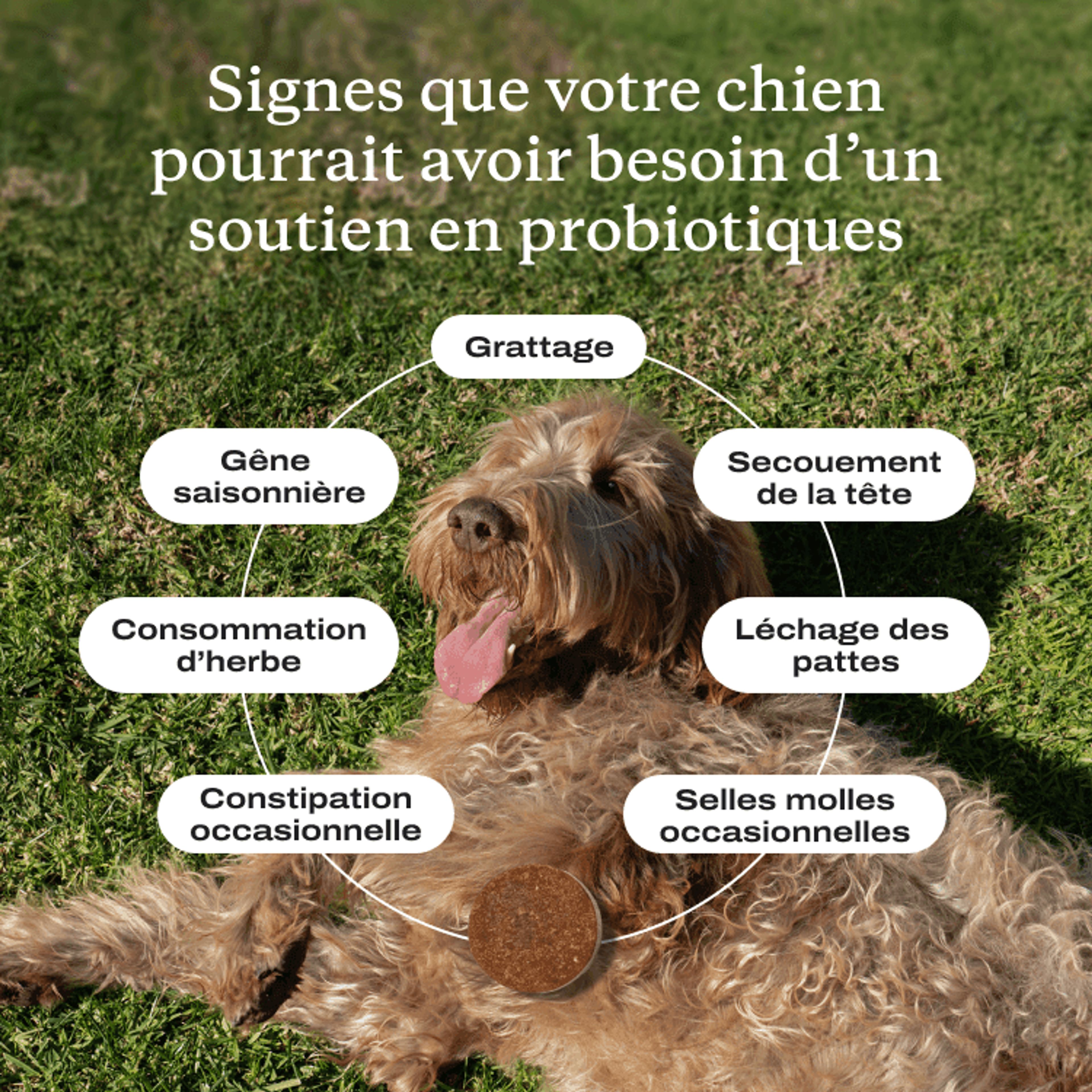 Un intestin en santé favorise une réponse immunitaire équilibrée, ce qui peut aider à atténuer les sensibilités saisonnières comme le secouement de la tête ou le mordillage des pattes.