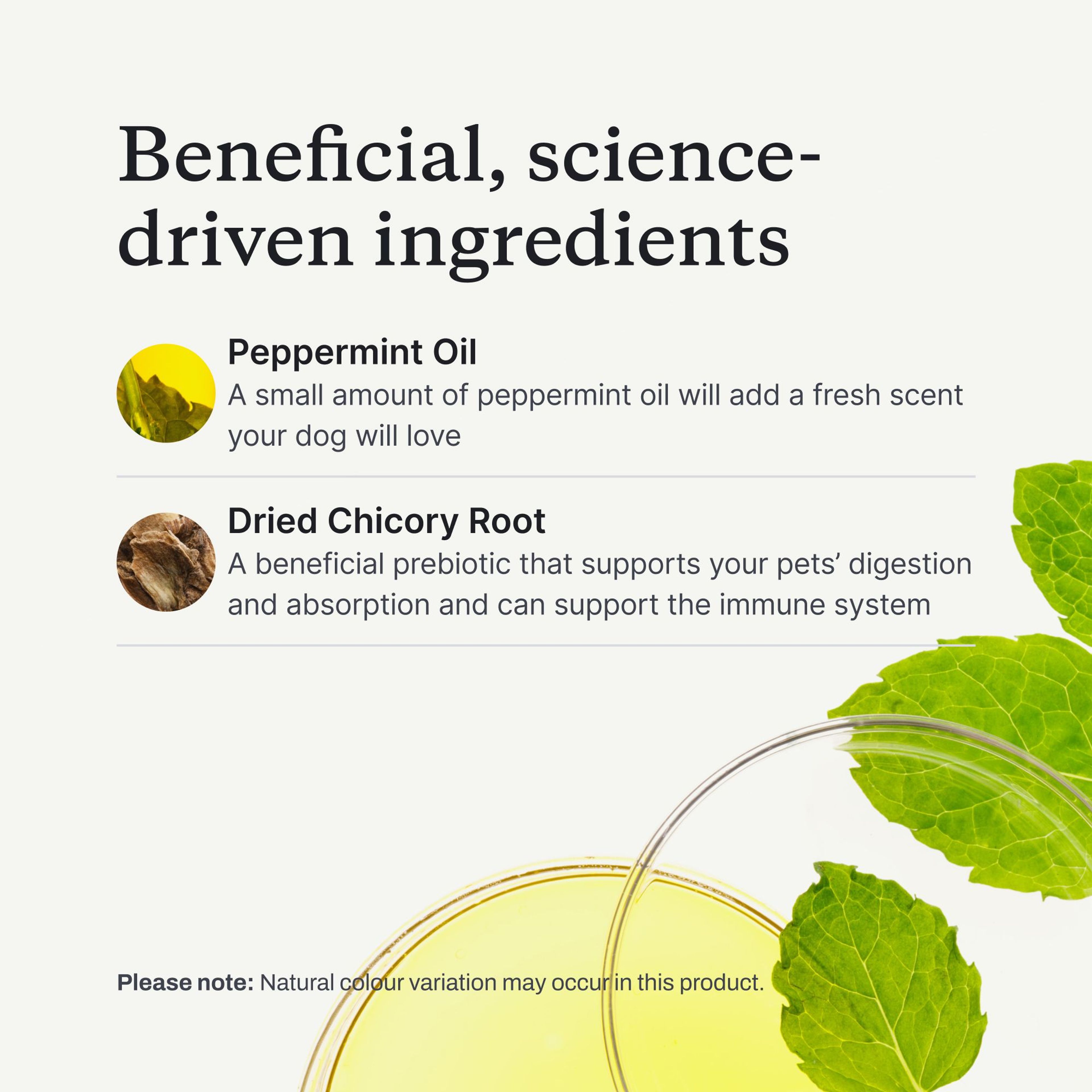 We worked closely with experts to design dog dental chews that help clean teeth while supporting gut health.