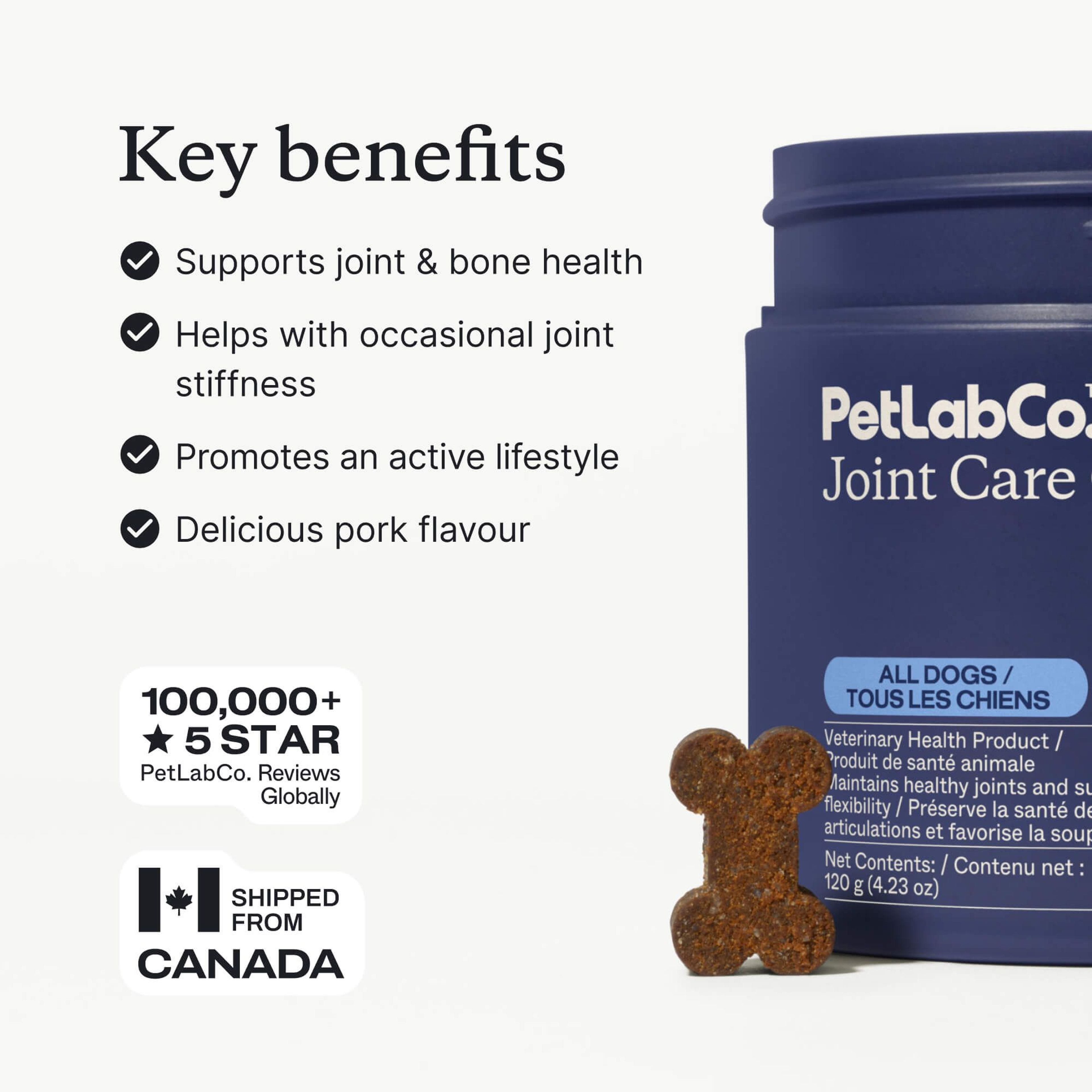 “PetLabCo.'s Joint Care Chews are a fantastic way to support your dog's joint health. These chews are packed with ingredients that promote flexibility and an active lifestyle.”